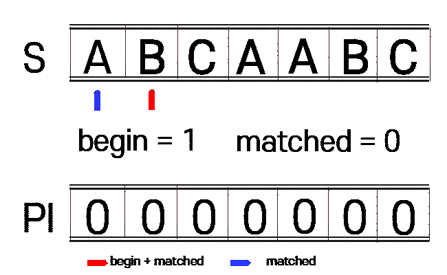 2. 문자열을 비교하고 만약 매칭이 되지 않을 시 PI테이블을 보고 시작할 위치를 정합니다.